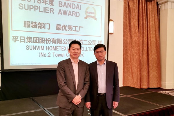 2019年6月19日,日本萬代(BANDAI)株式會社供應商大會在上海舉行。會上,萬代董事桃井信彥授予孚日集團股份有限公司最優秀供應商獎。