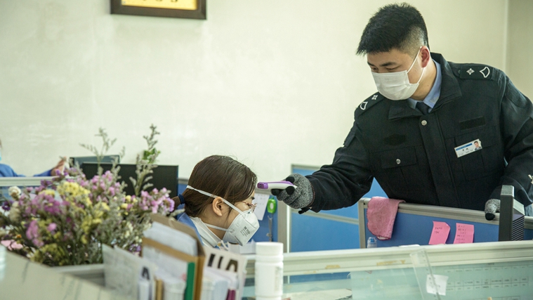 辦公區(qū)域每天兩次測(cè)溫。